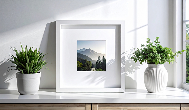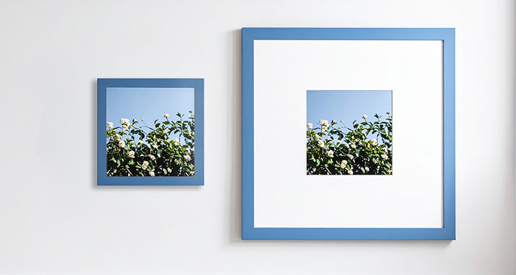 Let's say you have a print which is exactly A4 (210 x 297mm to be precise) in size. You can either A) just put this in an A4 frame with no mount, or B) create a mount for the A4 artwork to sit inside. If you would like a mount around your A4 artwork (option 'B'), this will mean that the frame that you will need will have to be larger than A4. This is because adding the mount around your A4 artwork will increase the size of the whole item. This then naturally raises the question: what size frame do I need then? The answer to this question is either A) a ready made frame size, larger than A4 or B) a custom size frame, which provides much more flexibility in terms of the size of the mount borders around your picture.