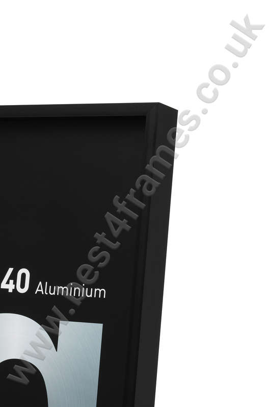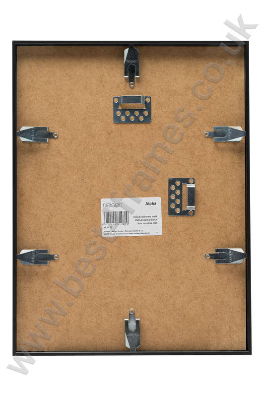 Nielsen Alpha Matt Black picture frame nielsen alpha anodised matt black picture frame straight on nielsen alpha matt black picture frame corner shot nielsen alpha anodised matt black picture frame wrapped Nielsen alpha picture frame dimensions nielsen alpha anodised matt black picture frame back of the frame