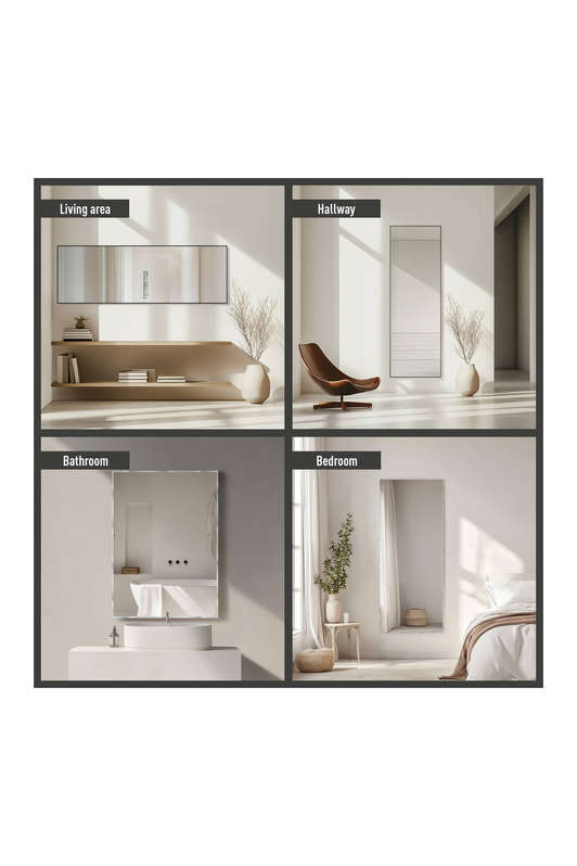 The rectangular mirror features 3 mm copper-free glass produced to DIN EN 1036 standards, ensuring high corrosion resistance and long-lasting, timeless aesthetics. Supplied with a complete mounting set including instructions, hangers, screws, dowels and foam pads for wall protection (fixings to be selected according to wall type), the Alpha mirror can be wall-mounted or freestanding to instantly elevate your space.