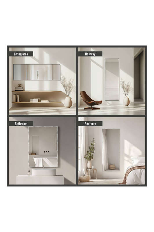 • The mirror glass (3mm) is copper-free and highly resistant to corrosion. Manufactured according to DIN EN 1036 (mirrors made of silver-coated float glass for indoor use).
