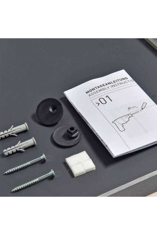 • Seamless installation: includes assembly instructions, hangers, screws, dowels and foam pads for wall protection.