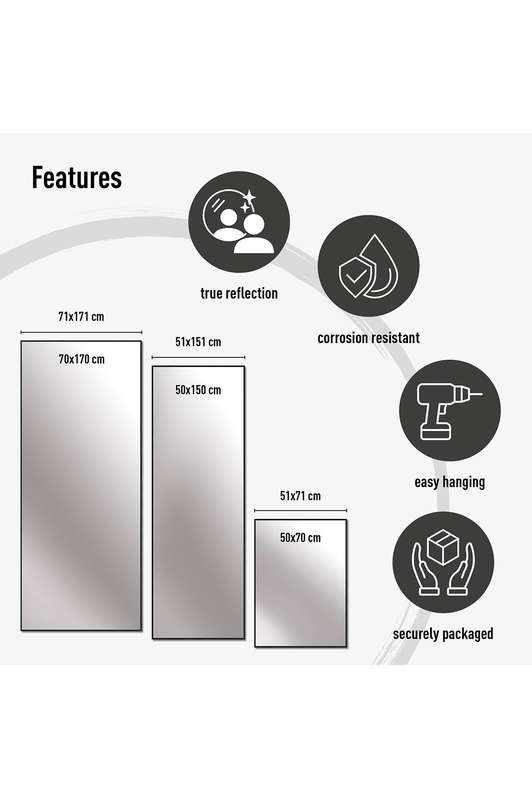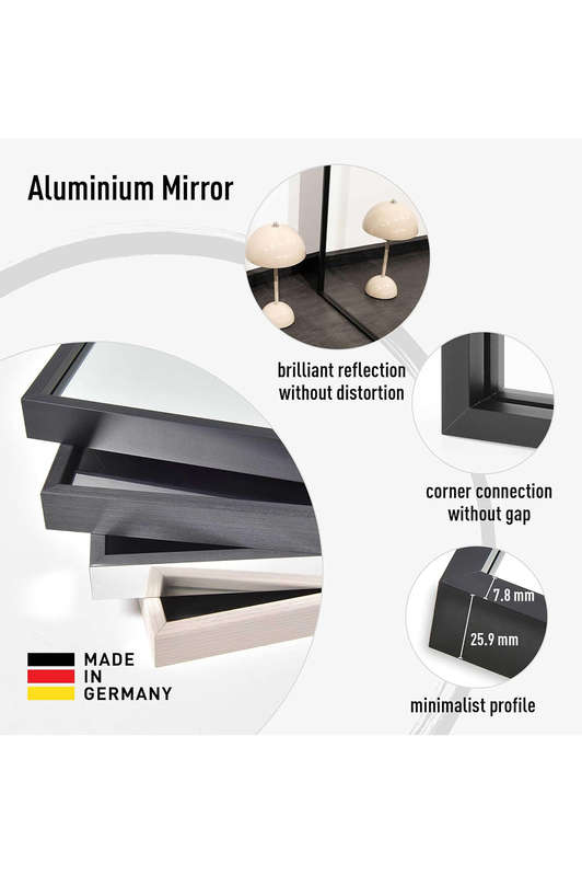 • The mirror glass (3mm) is copper-free and highly resistant to corrosion. Manufactured according to DIN EN 1036 (mirrors made of silver-coated float glass for indoor use).