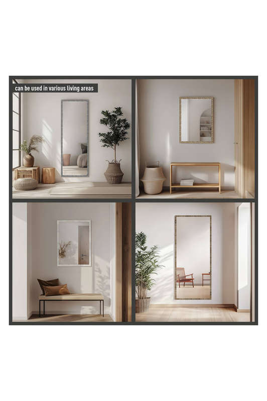 Available in external sizes of 51×71 cm, 51×151 cm and 71×171 cm with a slim 2 cm profile depth, the mirror features 3 mm copper-free glass manufactured to DIN EN 1036 standards, offering excellent corrosion resistance and long-lasting visual clarity. Supplied with a complete mounting kit including instructions, hangers, screws, dowels and foam pads for wall protection (fixings to be chosen according to wall type), the Florentina mirror can be wall-mounted or positioned upright to bring a stylish touch of glamour to your space in just minutes.