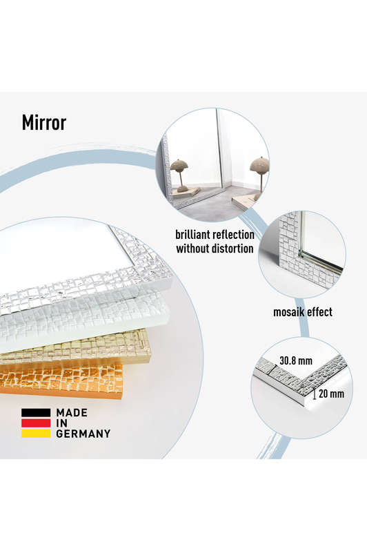 The Florentina mirror by Nielsen combines German-made quality with a glamorous mosaic-inspired design that instantly draws attention. Both decorative and practical, its distinctive frame adds character and elegance to any interior while remaining durable, easy to maintain and simple to clean thanks to its high-quality plastic construction.