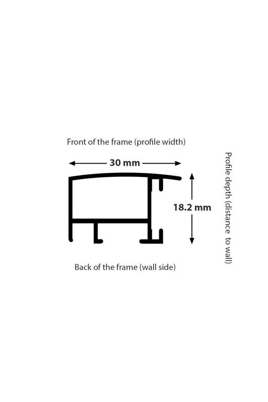 The width of these aluminium picture frames is 30mm, and therefore provides a much greater impact when displayed on your wall than some of the more understated styles of frames.