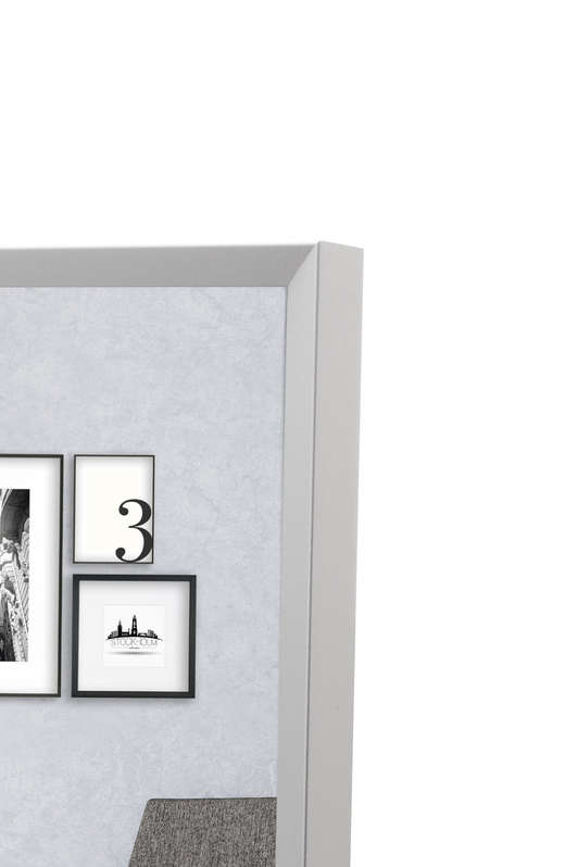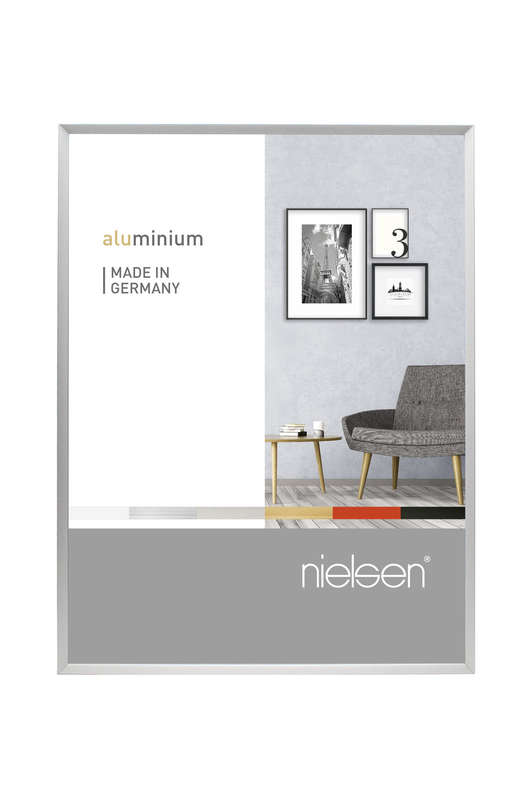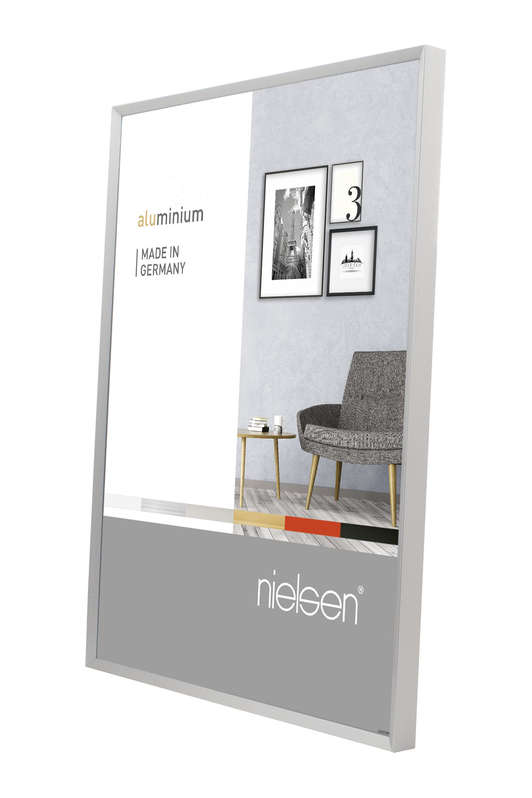 • Slim aluminium picture frame with a 7.5 mm profile that gently angles toward the image, designed and manufactured in Germany.