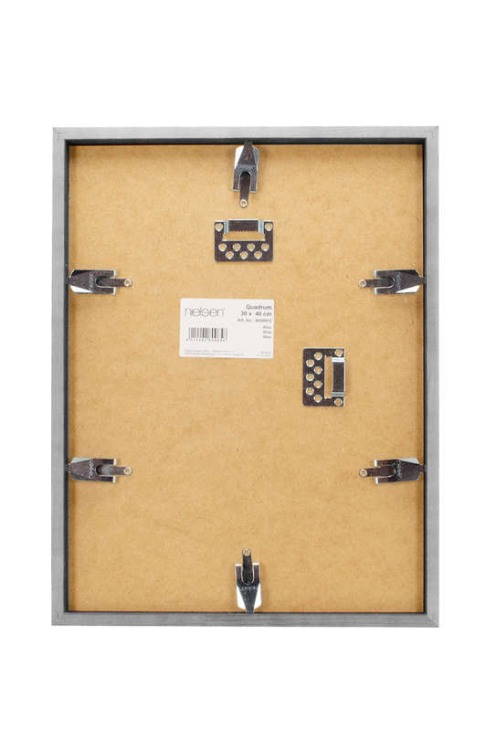 Each frame is fitted with premium components, including edge-ground float glass for safe handling, acid-free barrier paper to help protect your artwork, and a durable MDF backing board. Frames from 13 × 18 cm to 20 × 30 cm include a black MDF easel stand for convenient tabletop display, while larger sizes from 21 × 29.7 cm are equipped with sawtooth hangers for secure wall mounting in either portrait or landscape orientation. These wall frames also feature Nielsen’s practical push-and-turn clips, allowing you to change pictures quickly. The generous rebate depth provides space for double mounts or laminated prints.